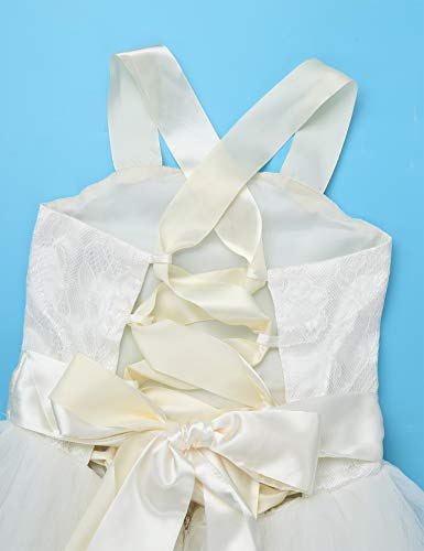 Freebily Vestito da Principessa Bambina Vestito Cerimonia Bimba Lacci in Schiena Abito Damigella Lungo da Sera Abito da Sposa Pizzo Floreale Matrimonio Festa Compleanno Beige 8 Anni