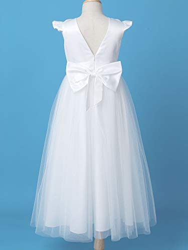 Freebily Vestito da Sposa Bambina Schiena Scoperta Abito Principessa Smanicato Pizzo Fiore Ragazza Abito Battesimo Bimba Chiesa Carnevale Bianco E 4 Anni