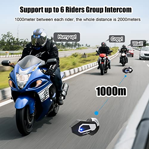 [6 Interfono Bluetooth Rider] - Sistema di comunicazione interfono Bluetooth per casco, appositamente progettato per motocicli. Tramite la funzione Bluetooth è possibile realizzare 6 gruppi interfonici simultanei, con una distanza intercomunicante massima di 1000 metri, e una distanza intercomunicante di gruppo fino a 2000 metri. Ti permette di rimanere in contatto con il tuo partner durante la corsa.