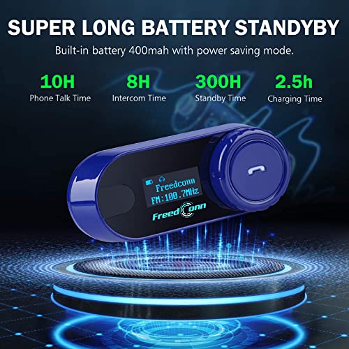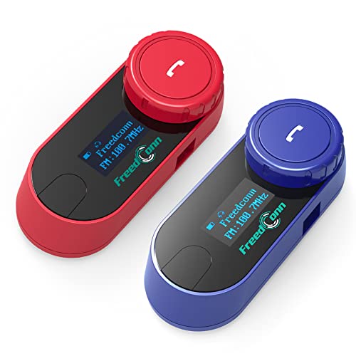 FreedConn Cuffie Bluetooth per moto TCOM-SC BT5.0 Sistemi di comunicazione per moto 2 Riders 800M Casco Citofono Condividi musica con schermo LCD FM Hard / Soft Mic Rosso & Blu/Coppia
