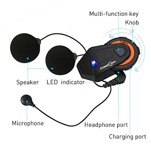 FreedConn Full Duplex Casco moto Bluetooth Intercom T-MAX Sistema di comunicazione per moto Vivavoce Casco wireless Bluetooth Interphone (QM01003S_2)