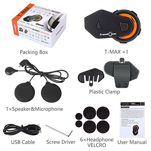 FreedConn Full Duplex Casco moto Bluetooth Intercom T-MAX Sistema di comunicazione per moto Vivavoce Casco wireless Bluetooth Interphone (QM01003S_1)