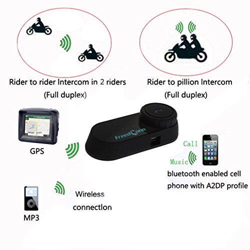 Freedconn 800M 3 Piloti 2x Moto Intercom Auricolare Bluetooth Casco Moto Interphone Interfono Bluetooth Cuffie & Stereo Interphone full duplex Nero EU