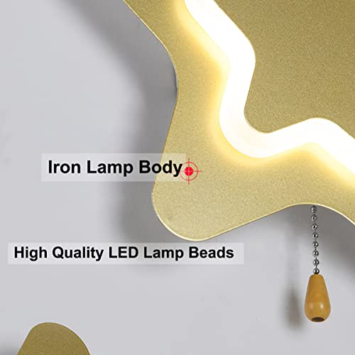 Applique a stella con interruttore] La lampada da parete della camera è dotata di un interruttore a tiretta, facile da usare e offre opzioni di controllo aggiuntive. Puoi passare direttamente tra la luce calda (3000K), la luce bianca (6500K), la luce neutra (4000K), può essere utilizzata come e-reader direttamente sul letto o sulla poltrona, lampada da parete design creativo.