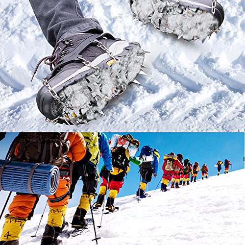 FreeLionVon Tipo di Cinturino Ramponi, 19 Denti Artigli Multi-Funzione Antiscivolo Ice Cleat Ramponi con Catena in Acciaio Inox per Picco di Ghiaccio Escursionismo Camping Moutaineering, Nero (L)