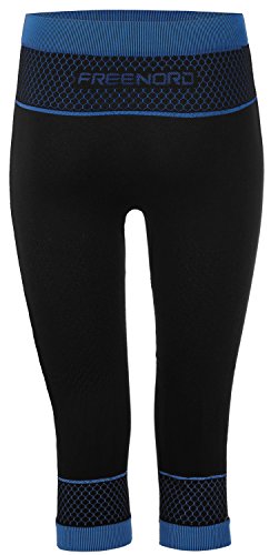 Freenord FITTECH ACTIVE Donna Thermoaktiv Legging Legins Strumphose Collant Laufhose Sporthose 3/4 Fitness Pilates Outdoor Radsport Running, nero/blu, M