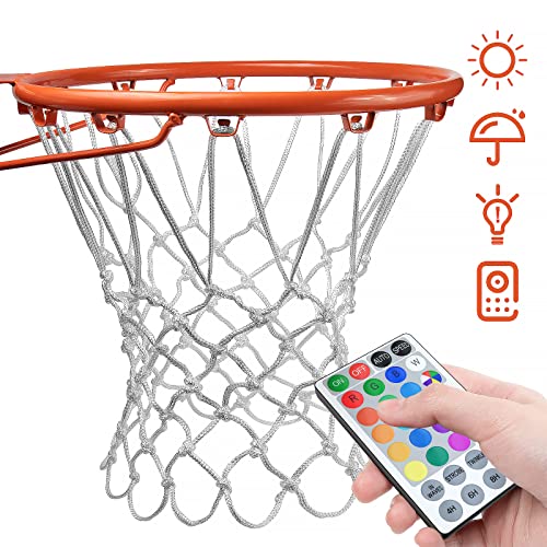 FREEPOWER Rete da Basket LED Luminosa, per Esterni, Resistente alle Intemperie, Funzionamento Batteria, RGB Cambia Colore, per Canestro da Basket, con Telecomando Timer Sfarfallio Dimmerabile