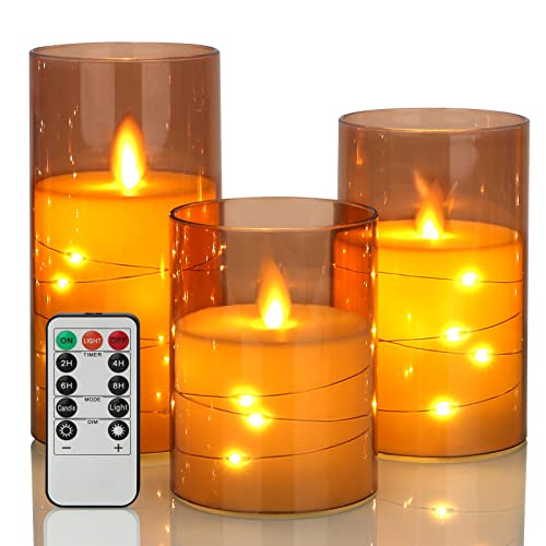 FREEPOWER 3 candele LED con telecomando, timer, fiamma tremolante, funzionamento a batteria, senza fiamma, luce bianca calda, acrilico, 7,5 x 10/12,5/15 cm