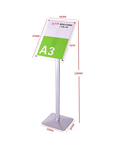 A3 Freestanding poster Holder Informazioni menu Frame Display Stand Pavement Sign - Easy Install (Color: Silver)