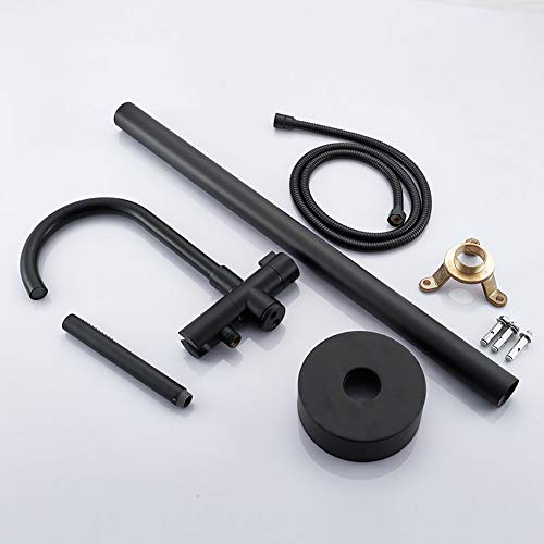 Nero Freestanding Rubinetti Vasca da Pavimento con Doccetta Miscelatore Bagno Ottone Rubinetto Acqua Calda Fredda,Nero