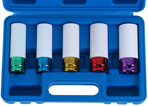 Set di 5 chiavi a bussola da 15, 17, 19, 21, 22 mm per avvitatore a impulsi.