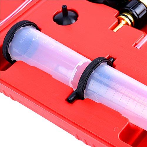Kit di spurgo del liquido dei freni da 21 pezzi, resistente e portatile, con pompa di aspirazione.