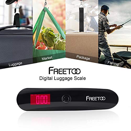 FREETOO Pese bagaglio elettronico Bilancia portatile Pesa bagagli digitale max 50 kg/110 libbre (LB,g,Oz,kg) Bilancia elettronica/Funzione Taro/Viaggio/Shopping/Poste/Uso domestico/esterno (Elegante