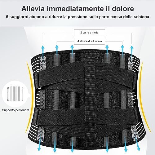 【Supporto Pressurizzato】 pressurizzazione della cintura elastica a grandi strati a doppio strato, 4 strisce in PP + 2 molle a molla, supporto posteriore alto 23 cm, che disperdono il carico della vita, fornendo un supporto professionale completo per la vita.