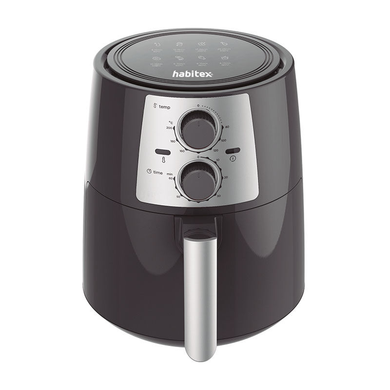 Timer 60 minuti con spegnimento automatico. Temperatura regolabile 0-200°C. Sistema di circolazione dell'aria calda. Grande capacità 4,2 l. Cestello 3,5 l. antiaderente. Lunghezza del cavo: circa 95 cm. Multifunzionale: friggere ad aria, cuocere, gestire, ecc. Potenza: 1.250-1.450 W. Dimensioni: 35x26xh.30,6 cm. Capacità: 4,2 l. Cestino: 3,5 l. 19,5x12,45 cm.