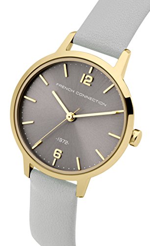 French Connection FC1280EG, orologio al quarzo da donna, con quadrante grigio, display analogico e cinturino in pelle grigio