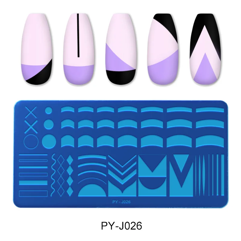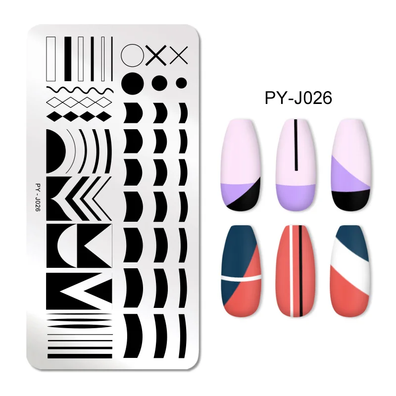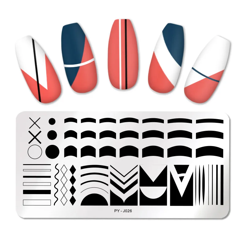 PICT YOU French Nails Stamping Plates Striped Line Geometric Square Stamping Plate Stencil Accessories Tools With Stamp Template