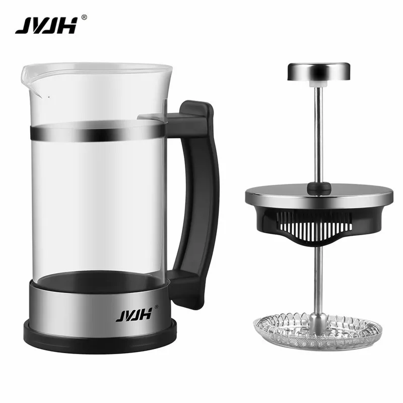 JVJH French Press Coffee Pot Hand Coffee Maker Kettle Glass Thermos Stainless Steel 350ML Drinkware Insulated Tea Maker Pot