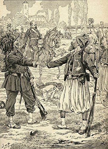 French and Sardinian soldiers shaking hands to celebrate their victory against the Austrians after the Battle of Palestro, Italy, 1859. From Agenda Buvard du Bon Marche published 1917. Poster Print (24 x 32)