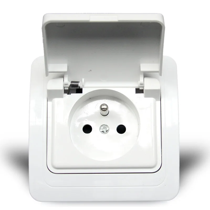 French Standard Wall Power Outlet Splash Socket With Cover Waterproof OA810FC