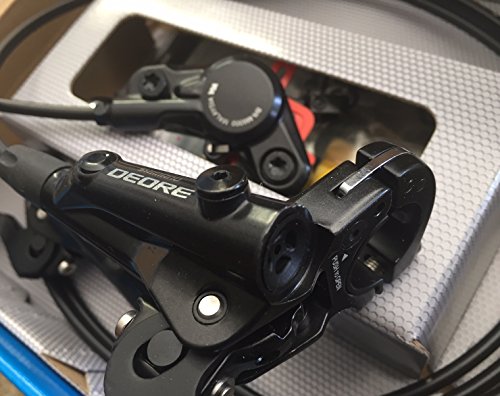 Set di freni Shimano M6000 2018. Colore: nero. . Anteriore con 100 mm di lato. . Posteriore con 170 mm laterale. . PURGATI E PRONTI PER USARE. . Kit per olive di regolazione laterali inclusi. . Adattatori non inclusi. FRENOS M615 DEORE DESCATALOGATI