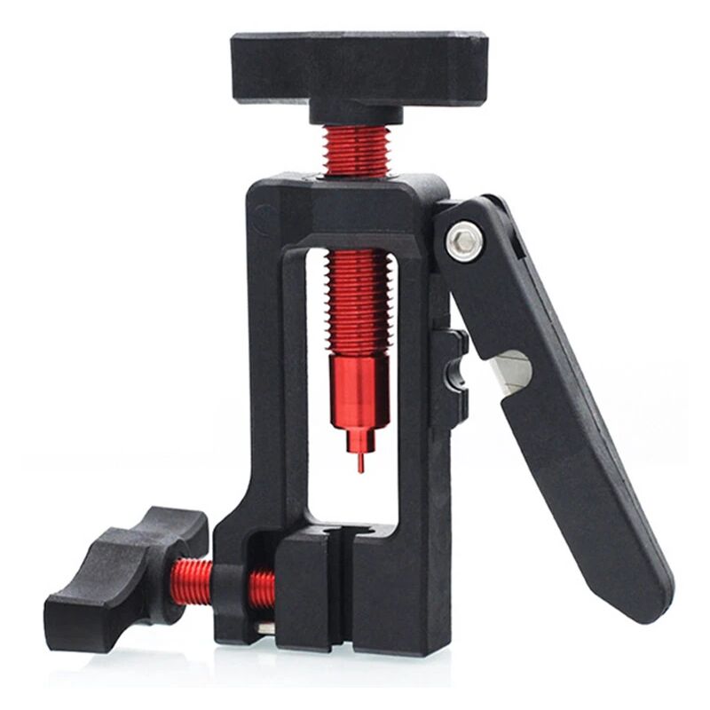 Nome: strumento multifunzionale per l'inserimento dell'ago dell'olio. Funzione: pressione dell'ago dell'olio/taglio del tubo dell'olio < p> Materiale: nylon. Peso netto: circa 77 g L'installazione di raccordi per tubi idraulici non dovrebbe essere fatto con un martello. I raccordi di precisione in ottone sulle estremità dei tubi idraulici possono essere facilmente crimpati o installati senza essere a filo con l'estremità del tubo. Ciò può causare scarse prestazioni di frenata. Il cacciavite ad ago è uno strumento facile da usare che fissa le estremità dei tubi idraulici e consente un'installazione facile e regolare di raccordi per tubi standard e torx.