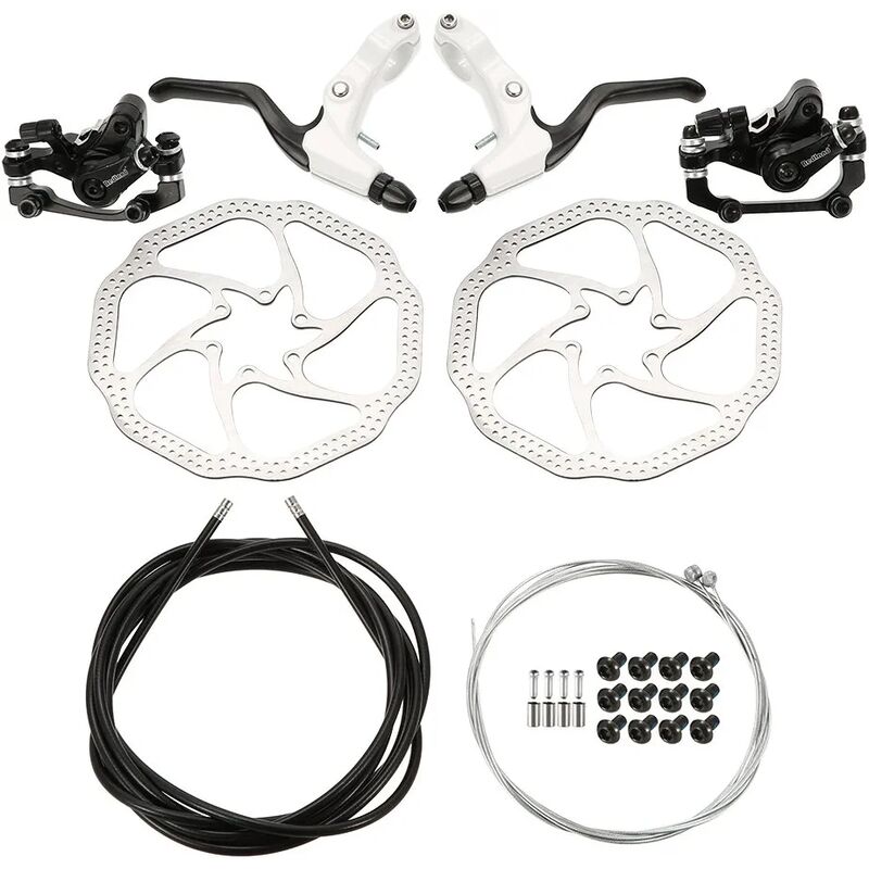 Tutto - Include 2 freni a disco, 2 rotori dei freni a disco, 2 cavi interni, 2 leve del freno a mano, 12 viti, 4 tappi terminali, 1 cavo del freno. 【Forte effetto frenante】Rotore del freno a disco in acciaio inossidabile, planarità perfetta e regolare, prestazioni di frenata meravigliose, adatto per mountain bike e bici da strada. La leva del freno mobile eccezionalmente liscia fornisce una forte potenza per la frenata. 【Buona qualità】Sono necessari cavi e puntali rivestiti in PTFE e cappucci terminali. 【professionale】Cavo interno in solido acciaio inossidabile per una maggiore potenza frenante e un funzionamento regolare.