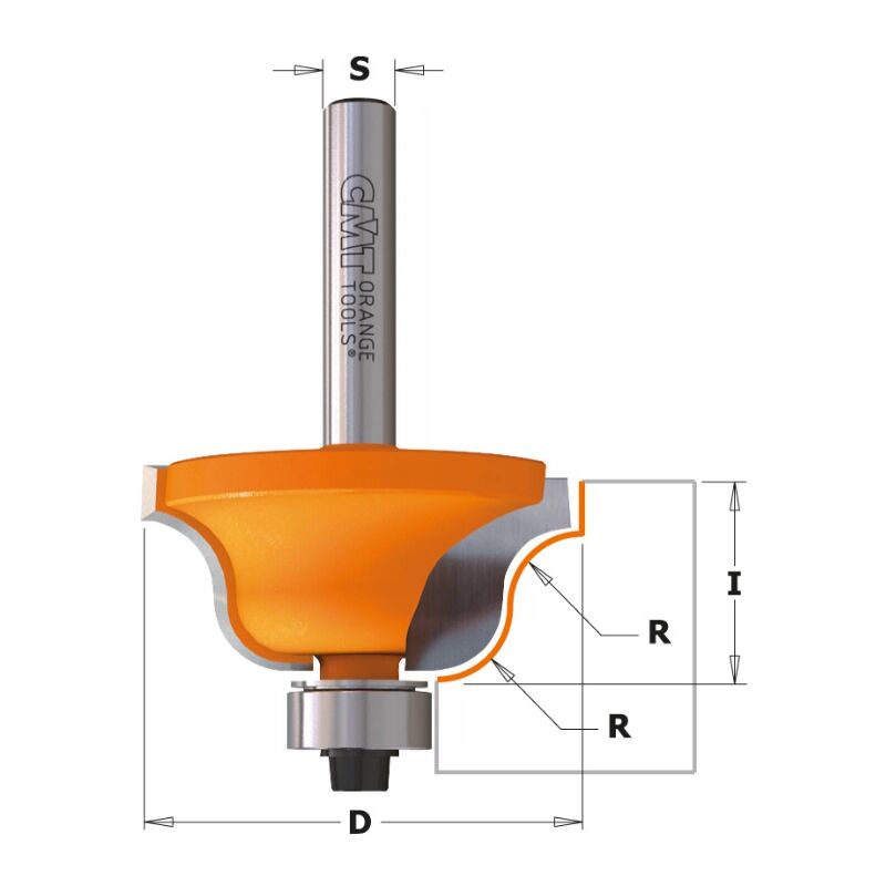 Fresa profilata a due taglienti, raggio 6,4 mm - CMT 740.350.11 Queste frese consentono nuove possibilità decorative al falegname che necessita di ampliare la propria gamma di decorazioni. Code R D I S 740.350.11 6,4 mm 38,1 mm 17,3 mm 6 mm