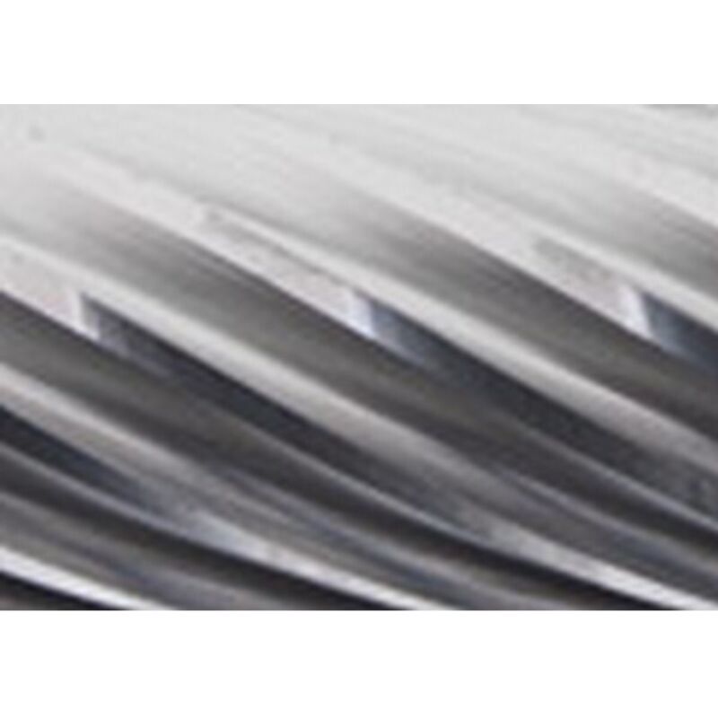 L'innovativa geometria dei denti permette elevate prestazioni di truciolatura e contemporaneamente rotazione regolare e facilità d'uso. Formazione del truciolo e qualità superficiale straordinarie, bassa penetrazione di calore nel materiale (senza colori di rinvenimento). ⌀ codolo 6 mm. Uso: Ottimizzato per la lavorazione di acciai austenitici, inossidabili e resistenti agli acidi, leghe in titanio dolci e metalli non ferrosi. Dati tecnici Al/Mg m/s limitatamente adatto Ti m/s limitatamente adatto INOX m/s idoneo CuZn m/s limitatamente adatto Materiale da taglio HM Tipo di prodotto Fresa rotativa ⌀ Testa, mm 6 Lunghezza della testina, mm 5 Lunghezza complessiva, mm 45 ⌀ Gambo, mm 6 della forma sferica Sigla della dentatura INOX Grado di finezza della dentatura grosso Forma D0605
