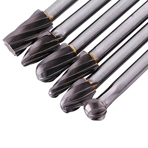 Fresa rotativa, 6 pezzi 6 mm attacco 10 mm diametro taglio carburo di tungsteno alluminio file rotativi set di frese per utensili elettrici o pneumatici