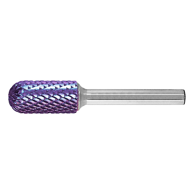 ⌀ Codolo 6 mm. Le frese rotative LUKAS sono realizzate con metalli duri di alta qualità particolarmente tenaci e con taglienti molto stabili, esclusivamente con moderne macchine CNC. In caso contrario anche il gambo in metallo duro. Rivestimento supplementare in TiAlN per maggiore durata e resistenza al calore. Per sollecitazioni termiche e meccaniche elevate (Heavy Duty). Forma cilindrica a testa tonda (WRC). Uso: Sia per l'utilizzo manuale sia per l'utilizzo industriale robotizzato con quasi tutti i materiali. Per lavori di sbavatura, smussatura bordi, intonacatura, nonché per lavorazioni sui punti di saldatura e sulle superfici. Dati tecnici Ti m/s idoneo Acciaio < 60 HRC m/s idoneo INOX m/s idoneo Acciaio < 1400 N/mm² m/s idoneo Acciaio < 900 N/mm² m/s idoneo Acciaio < 55 HRC m/s idoneo Acciaio < 67 HRC m/s limitatamente adatto Materiale da taglio HM TiAlN Rivestimento TiAlN Tipo di prodotto Fresa rotativa ⌀ Testa, mm 6 Lunghezza della testina, mm 16 Lunghezza complessiva, mm 50