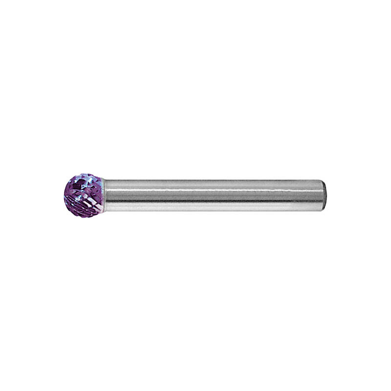 ⌀ Codolo 6 mm. Le frese rotative LUKAS sono realizzate con metalli duri di alta qualità particolarmente tenaci e con taglienti molto stabili, esclusivamente con moderne macchine CNC. In caso contrario anche il gambo in metallo duro. Rivestimento supplementare in TiAlN per maggiore durata e resistenza al calore. Per sollecitazioni termiche e meccaniche elevate (Heavy Duty). Forma sferica (KUD). Uso: Sia per l'utilizzo manuale sia per l'utilizzo industriale robotizzato con quasi tutti i materiali. Per lavori di sbavatura, smussatura bordi, intonacatura, nonché per lavorazioni sui punti di saldatura e sulle superfici. Dati tecnici Ti m/s idoneo Acciaio < 60 HRC m/s idoneo INOX m/s idoneo Acciaio < 1400 N/mm² m/s idoneo Acciaio < 900 N/mm² m/s idoneo Acciaio < 55 HRC m/s idoneo Acciaio < 67 HRC m/s limitatamente adatto Materiale da taglio HM TiAlN Rivestimento TiAlN Tipo di prodotto Fresa rotativa ⌀ Testa, mm 10 Lunghezza della testina, mm 9 Lunghezza complessiva, mm 49 ⌀ Gambo, mm 6