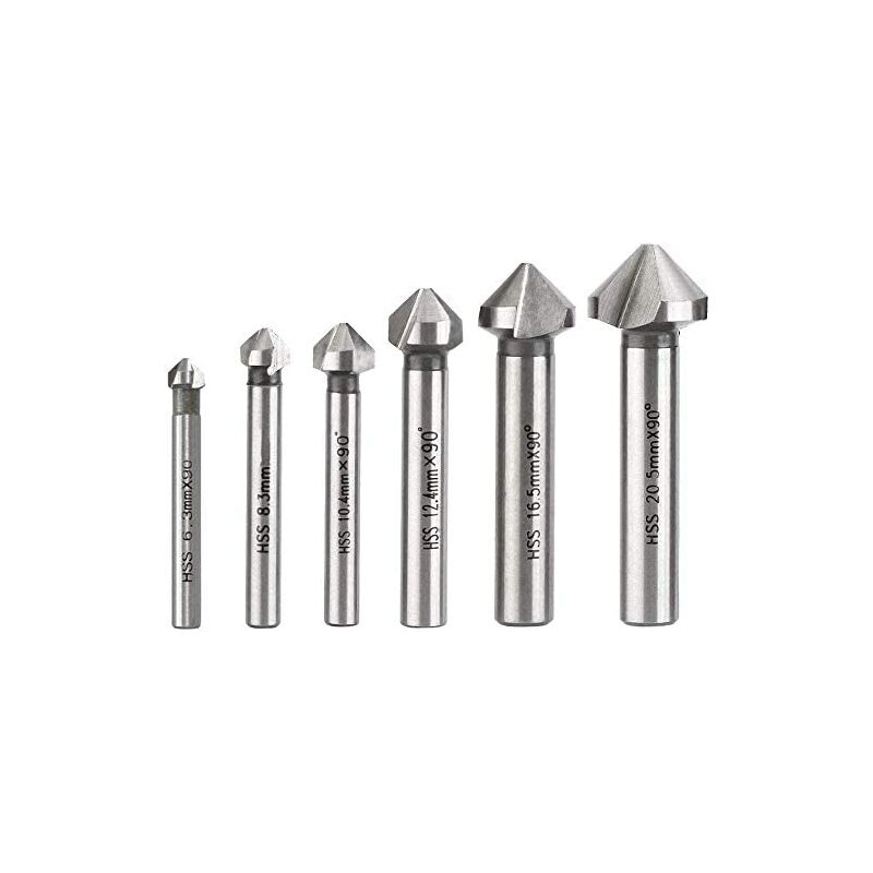 Sharp Anti-Rust - ★ Questa taglierina è realizzata in acciaio HSS ad alta velocità, elevata durezza e non facile da arrugginire. Il suo tagliente è temprato e rettificato, quindi è più affilato e ha una maggiore durata.✔Nota: se si utilizza una punta svasata su un trapano a mano, utilizzare una punta elicoidale per praticare il foro, quindi utilizzare un trapano con testa svasata in modo per evitare qualsiasi rischio di svasatura causato dalla perforazione. 【Più materiali di lavorazione】★: 6 svasatori PCS in noce possono essere utilizzati per smussare i bordi dei fori. I coni svasatori possono gestire diversi materiali come legno duro e sughero, foglio di alluminio, plastica, PVC e ferro leggero. Questa fresa per smussi è adatta a tutti i tipi di macchine utensili 【Design smussato】 ★: la fresa per smussi adotta il corretto design dell'angolo di inclinazione, antiruggine e anticorrosione, bella e delicata, conferendo forza e rigidità della fresa per spigoli vivi, l'elevato aumento della