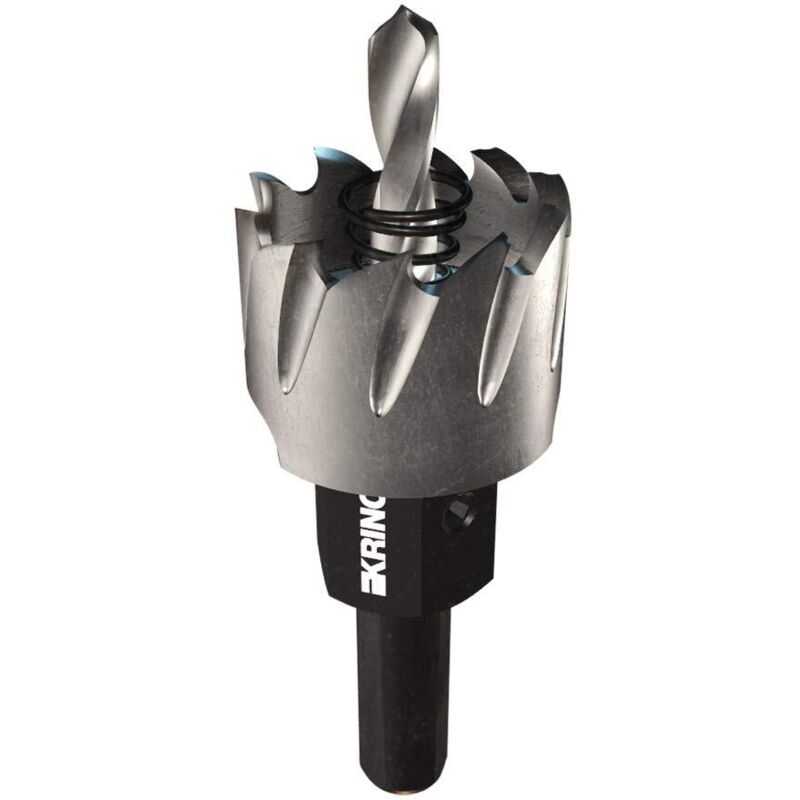 Taglienti riaffilabili, utilizzabili sia su trapani portatili che fissi per forare, acciai, ferro, ghisa, leghe metalliche, etc. profonditã di foratura fino a 5 mm di spessore. completa di gambo e punta pilota.mm 41