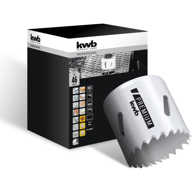 KWB - FRESA A TAZZA BIMETALLICA HSS-CO 46MM La lama della sega è adatta anche per il legno con parti metalliche resistenti incorporate come B. chiodi, viti e profili temprati. La sega a tazza bimetallica è particolarmente adatta per acciaio, ghisa grigia, acciaio strutturale, lamiere in acciaio inossidabile, alluminio, bronzo, rame, plastica, acrilico, cartongesso e legno. Con attacco a T / attacco a camma singolo adatto per la maggior parte dei seghetti alternativi disponibili in commercio di Einhell, Bosch, Metabo e molti altri (kwb Art. No. 624720) La sega a tazza ha un'elevata concentricità e una costruzione stabile, inoltre ha una filettatura M8 per l'albero di montaggio.