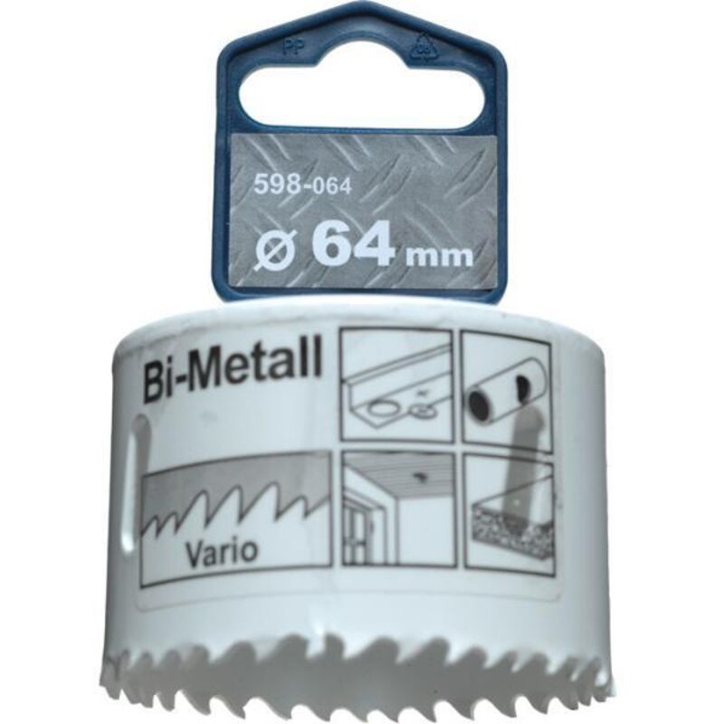 KWB - FRESA A TAZZA BIMETALLICA HSS-CO 64MM La sega a buco ha un dentellamento progressivo Vario per un chip accelerato esterno. La sega a foro Bi-Metal è particolarmente adatta per acciaio, ghisa grigia, acciaio da costruzione, lamiere in acciaio inox, alluminio, bronzo, rame, plastica, acrilico, cartongesso e legno. La sega a foro in metallo ha una dentellatura a bi-metallo a HSS variabile. La sega a buco ha un'alta concentricità e una Costruzione stabile, e ha un filo M8 per l'albero di registrazione.