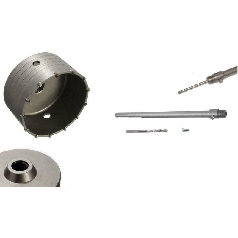 Kit asta per fresa a tazza carotatrice in acciaio con innesto SDS-max Lunghezza 350 mm Filettatura per attacco frese 20 mm Completa di bullone e punta centratura 6 mm COMPLETA DI FRESA DA 80MM Disponibili nel negozio diametri di varie misure e barre di varia lunghezza. OGGETTO NUOVO NEL SUO IMBALLO ORIGINALE