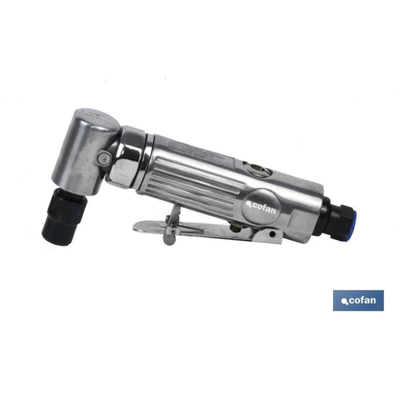 Fresatrice pneumatica ad angolo di 90° ad alte prestazioni. Speciale per lavori di difficile accesso. Ideale per l'utilizzo di abrasivi, barre lucidanti e frese metalliche. Utensile leggero e maneggevole con ingranaggio conico a spirale. Incorpora un c