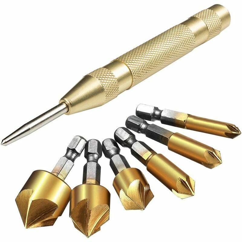 6 diverse misure: Questi inserti sono disponibili in 6 diversi diametri: 6 mm, 8 mm, 9 mm, 12 mm, 16 mm, 19 mm. Uso: ideale per incorporare fori di montaggio in legno o plastica. Materiale: questi trapani sono realizzati in acciaio rivestito di titanio ad alta velocità e ultra resistente e si comportano bene anche nei materiali più duri. li> Cambio rapido: con alberi esagonali da 64 mm per una ricarica rapida. Non scivolare nel mandrino. Bonus: 1 colpo automatico gratuito. Contrassegnare una rientranza nel materiale da lavorare per creare un punto di partenza che impedisca alle viti e ai trapani di muoversi. Descrizione: Punta conica 6,35 mm con punzone centrale automatico. < Questi trapani a testa svasata sono disponibili in 6 diversi diametri: 6 mm, 8 mm, 9 mm, 12 mm, 16 mm, 19 mm. Durevole e pratico, ideale per assi di legno, pannelli di fibra, truciolato, compensato, plastica, pannelli di alluminio, ecc. Adatto per fai da te, casa e costruzione/ingegneria generale.