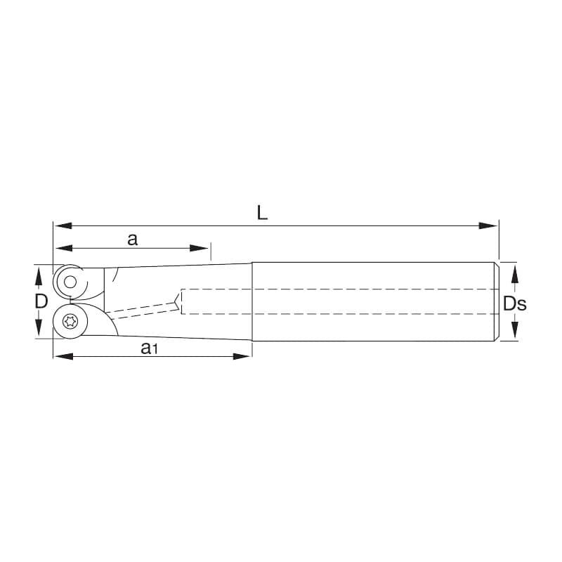 Ramping Passo dei taglienti differente Passaggio interno per LR sì Sostituzione del materiale PowerCard ⌀ D3 5 mm Sporgenza totale L1 14 mm Lunghezza complessiva Lcompl. 70 mm Codolo ⌀ Ds h6 8 mm Fresatura a interpolazione ⌀ Dmin. 15 mm Fresatura a interpolazione ⌀ Dmax. 18 mm Fresatura a interpolazione ap 1,1 mm Angolo rampa αmax. 5,37 ° Lunghezza rampa L per αmax. 3,74 mm Inserto adatto RD.. 0501 Set di viti per inserti 219802 (6IP;