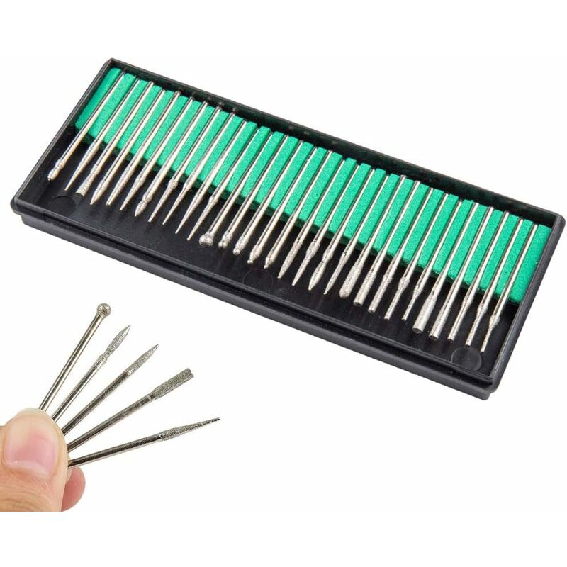 30 pezzi di frese diamantate: l'assortimento include diverse dimensioni di frese a cono tondo, cono, cono rovesciato, albero, gemma, cilindro e lama per usi diversi, più convenienti e utili (si prega di ottenere il codice promozionale su la pagina del prodotto al momento dell'acquisto per ottenere un prezzo più favorevole.) Rivestito con polvere di microdiamante di alta qualità, utilizzata per la molatura di stampi e fori interni, la squisita fattura fornisce prodotti di alta qualità Adatto per essere abbinato a mulino elettrico, macchina per incidere e altre macchine a motore per uso normale, può essere utilizzato per incidere, molare e incidere su una varietà di materiali, come vetro, giada, ecc. Riparazione di stampi, incisioni, può essere utilizzato per mobili, artigianato, stampi, produzione musicale, tutti i tipi di aeromodelli, barche e così via. Consigliato per gioiellieri, lapidario, hobby e artigianato, modellismo, riparazioni domestiche, ecc. Questo set è per molatura