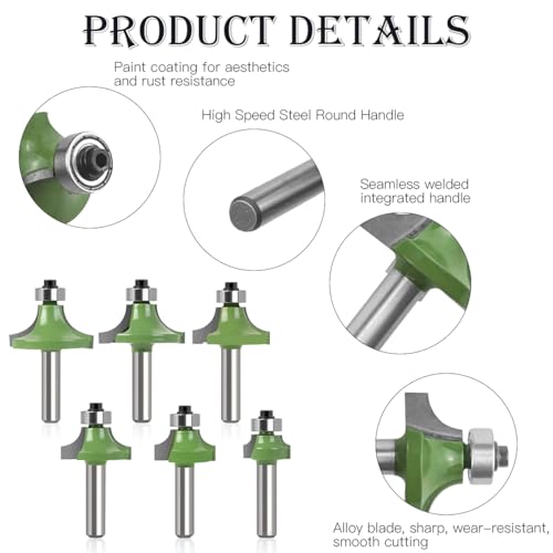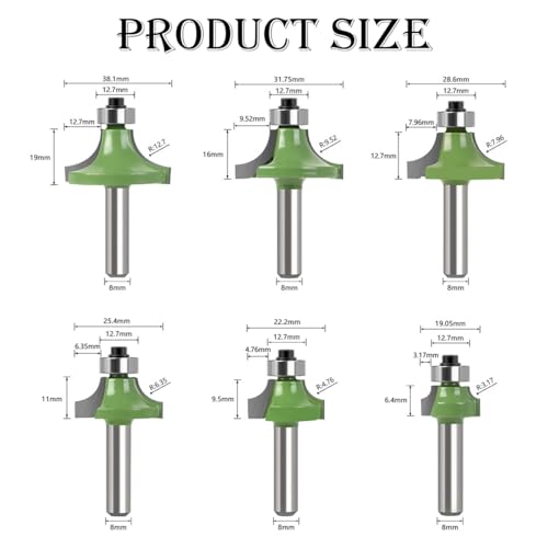 6 Pcs Set Frese per Legno, Fresa per Legno con Cuscinetto a Sfera, Frese per Legno 8mm, Fresa Legno, Fresa a Raggio Standard, Punte Fresa Legno per Legno Mobili Di Bricolage