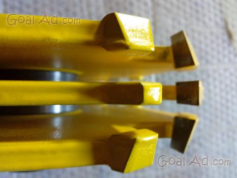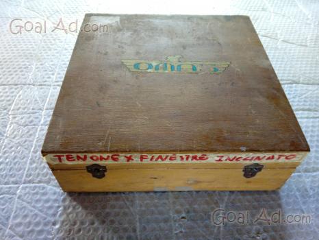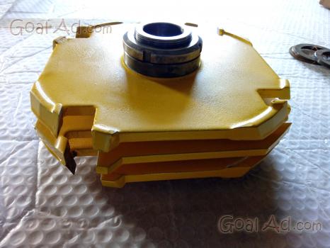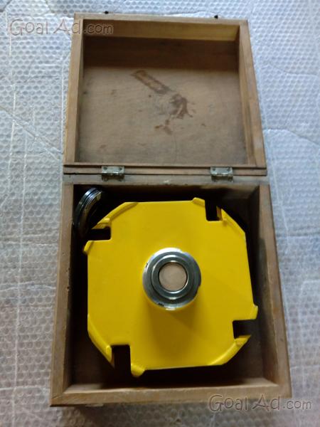 Frese per legno per gruppo Tenoni della Omas misura 24 cm. taglienti al Widia sopra e sotto inclinati da 17 mm. e centrale da 10 mm. e affilata, foro centrale 35 mm. regolabile in altezza più vari spessori, completa di custodia. ritiro su Grosseto o spedizione.