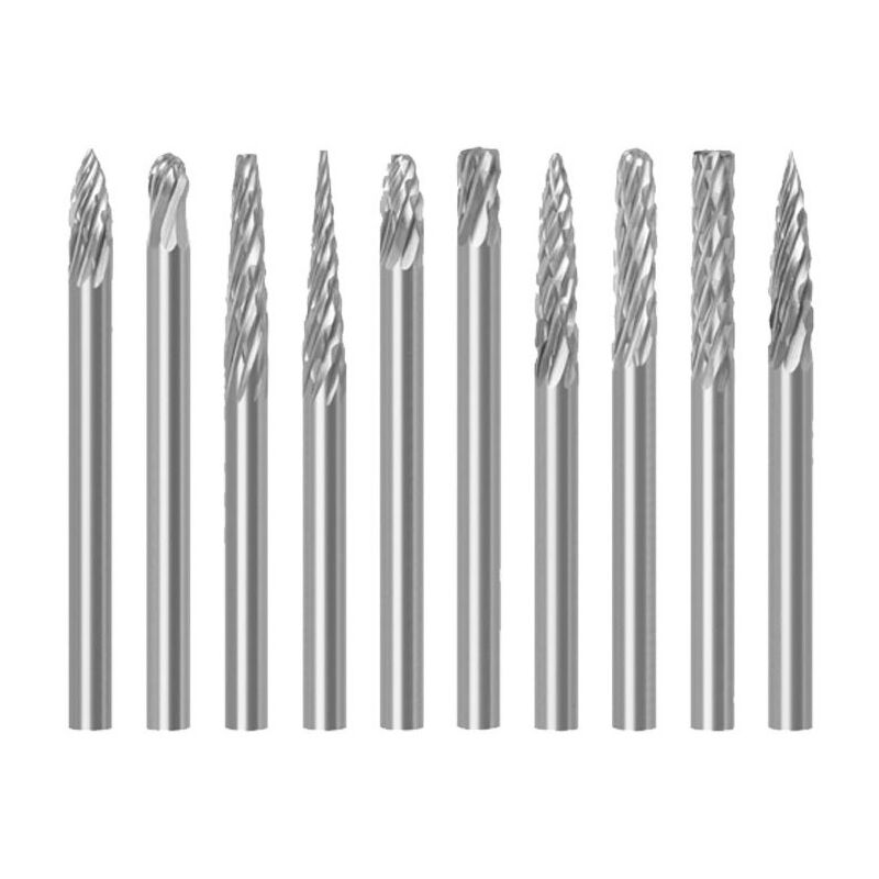 10 pezzi Set di frese rotative in metallo duro con teste a doppio taglio con un tasso di truciolo più elevato. Utilizzato in legno, plastica, metallo tenero come alluminio Per sbavatura, brocciatura, intonacatura, saldatura e trattamento superficiale< /li> Può essere utilizzato con la maggior parte degli utensili manuali elettrici, inclusi utensili elettrici o pneumatici portatili Ampiamente usato per la lavorazione dei metalli, la costruzione di utensili, la modellistica, la scultura su legno, la creazione di gioielli, la saldatura, la smussatura, la fusione, la molatura, il porting e l'intaglio di testate < p>10 pz. 3 mm (1/8") Asta in carburo di tungsteno solido Set di lime rotanti a doppio taglio con frese diamantate con diametro della testa di taglio di 3 mm. Adatto a: La maggior parte delle