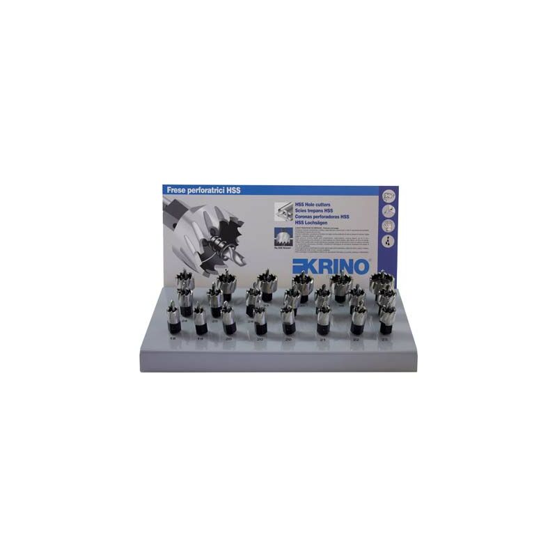 Con dentatura ricavata interamente di rettifica, taglio laterale rompitruciolo, punta di centraggio e molla di espulsione del dischetto. Codolo esagonale. Profondità di foratura sino a Mm. 8. Per forare lamiere in acciaio, ferro, leghe leggere, tutti i materiali metallici in genere, plastica dura. Riaffilabili. In espositore da banco. Mm. 18-19-20 (3 Pz)-21-22-23-24-25-26 (2 Pz)-27-28-29-30-32-33-35-38-40.