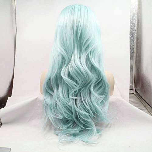Fresh color Blue synthetic Glueless Heat Resistant Fiber Mixed color verde blu ondulato pizzo anteriore parrucche per le donne lungo free Part setole morbide per Drag Queen 24"