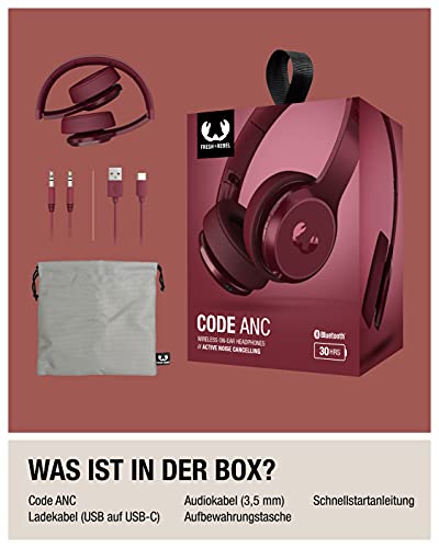 Fresh ´N Rebel Code ANC Cuffie On-Ear con 30 ore di riproduzione, Pieghevole, Microfono (Ruby Red)