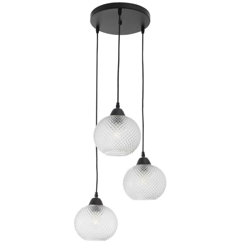 Merano Fresno Plafoniera a sospensione a 3 luci in vetro trasparente, metallo nero LED E27 | Finitura: nero, trasparente | Materiale: metallo, vetro | Classificazione IP: IP20 | Altezza: 160cm | Lunghezza: 30 cm | Larghezza: cm | Tipo di lampada: E27 | N. di lampade: 3 | Lampadina inclusa: No | Dimmerabile: No | Potenza (massima): 3x12W