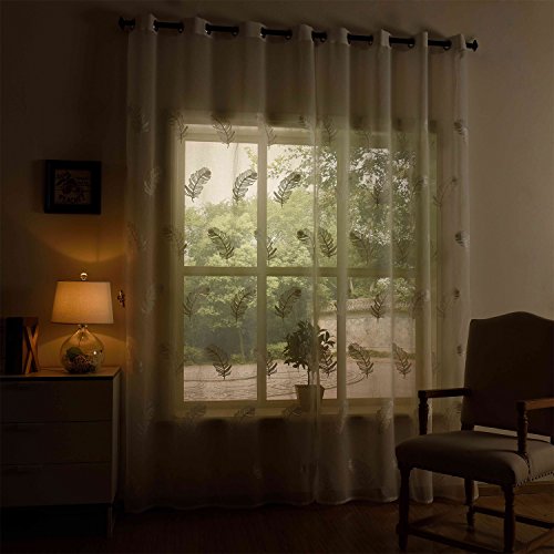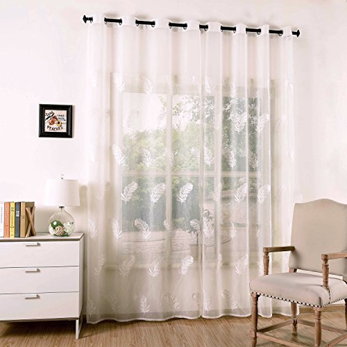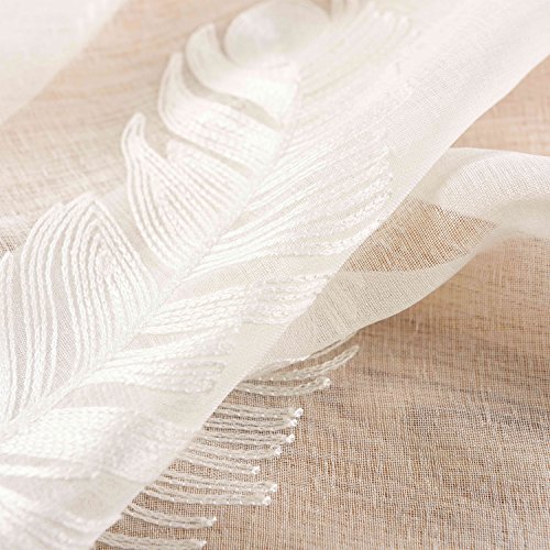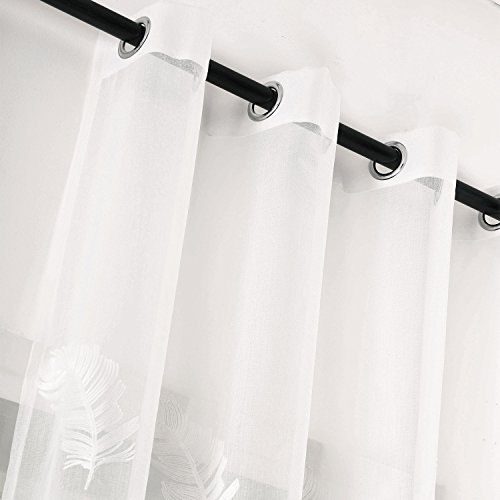 Fresquita Voile Tende con Occhielli Piuma Ricamate Bianca Moderna per Parete Porta Finestra Balcone 140 x 240 cm 2 Pezzi