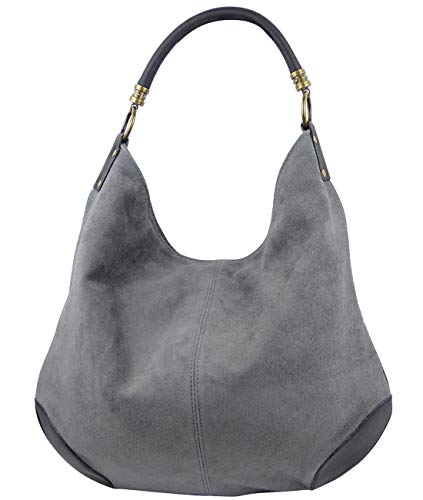 Freyday Borsa a mano da donna in pelle scamosciata con tracolla e patch in pelle S02